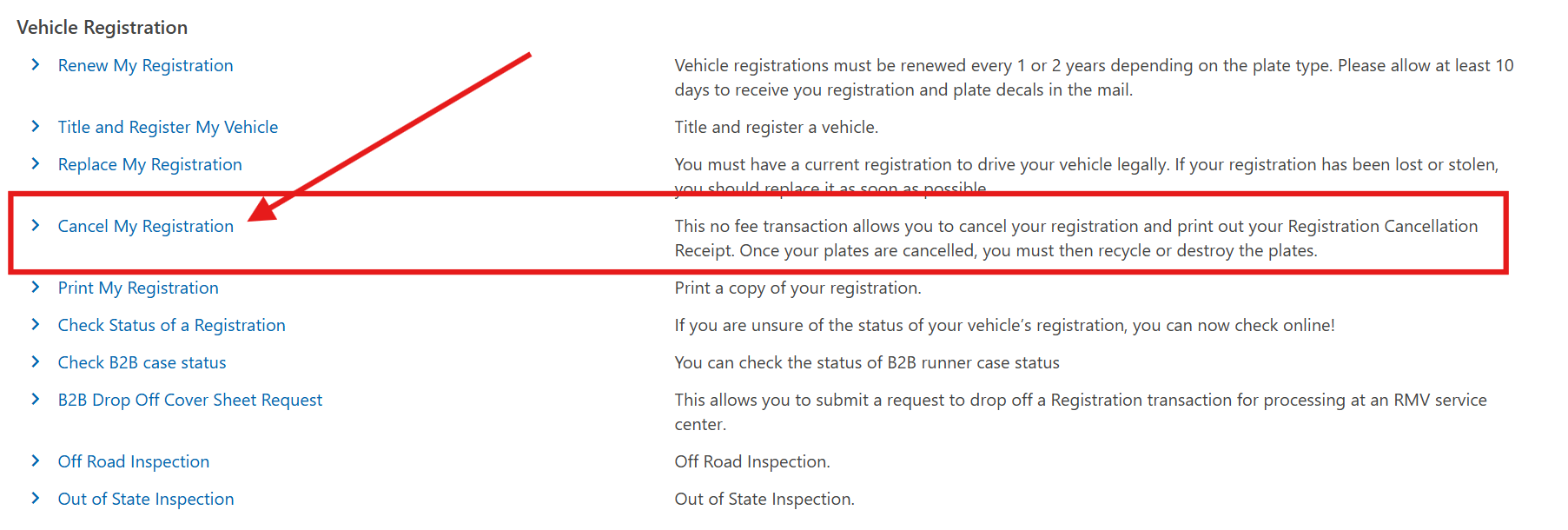 If you’ve sold, traded, totaled, or no longer need your vehicle registered, you must cancel your Massachusetts license plates through the RMV.